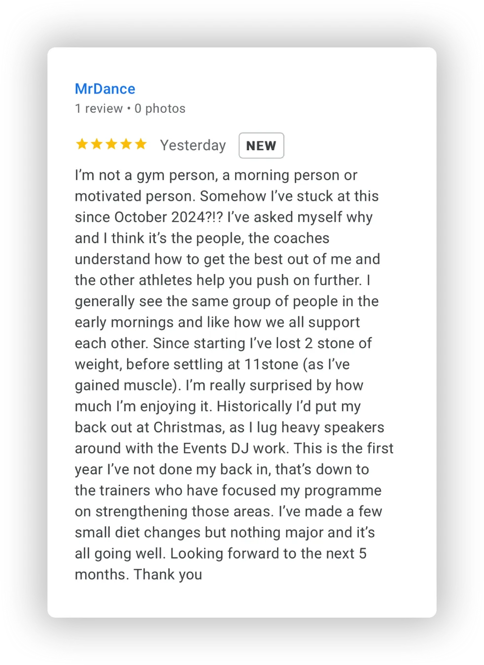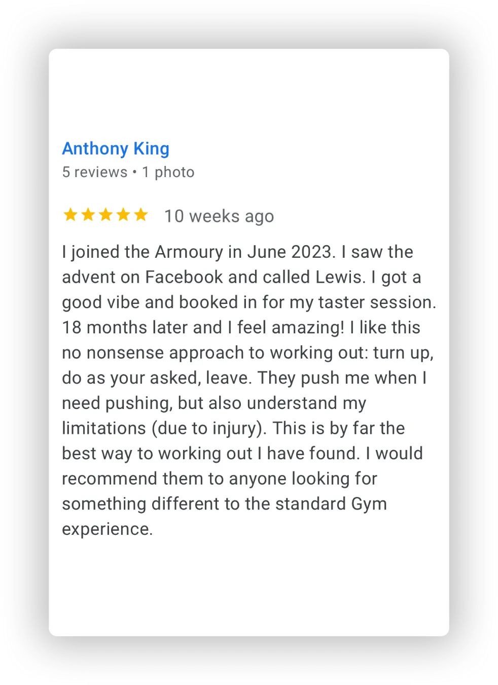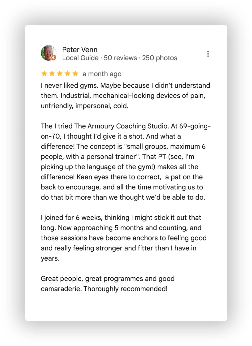 We’re a small group personal training studio that specialises in helping “non gym people” - people who’ve struggled to stay consistent in the past to get stronger, healthier, and more confident, for good.